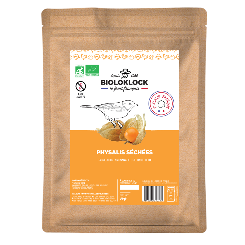 Les physalis sont conditionnées dans des sachets de 50g avec un zip. Vous pouvez donc les glisser facilement dans votre sac pour un encas ou après une séance de sport. Elles sont aussi idéales dans les préparations culinaires.