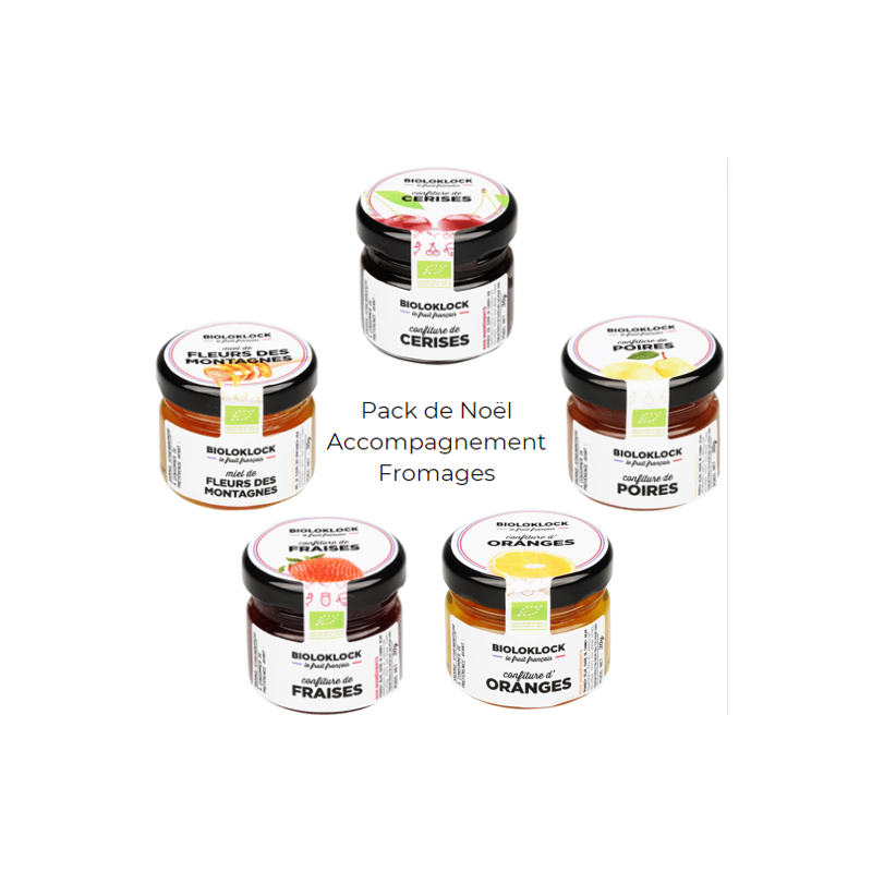 Ce pack de Noël découverte est idéal pour accompagner votre plateau de fromages ou pour offrir ! Il est composé des parfums suivant : cerise (brebis), miel (chèvre), fraise (Roquefort), orange (Comté, Emmental), poire (Bleu)