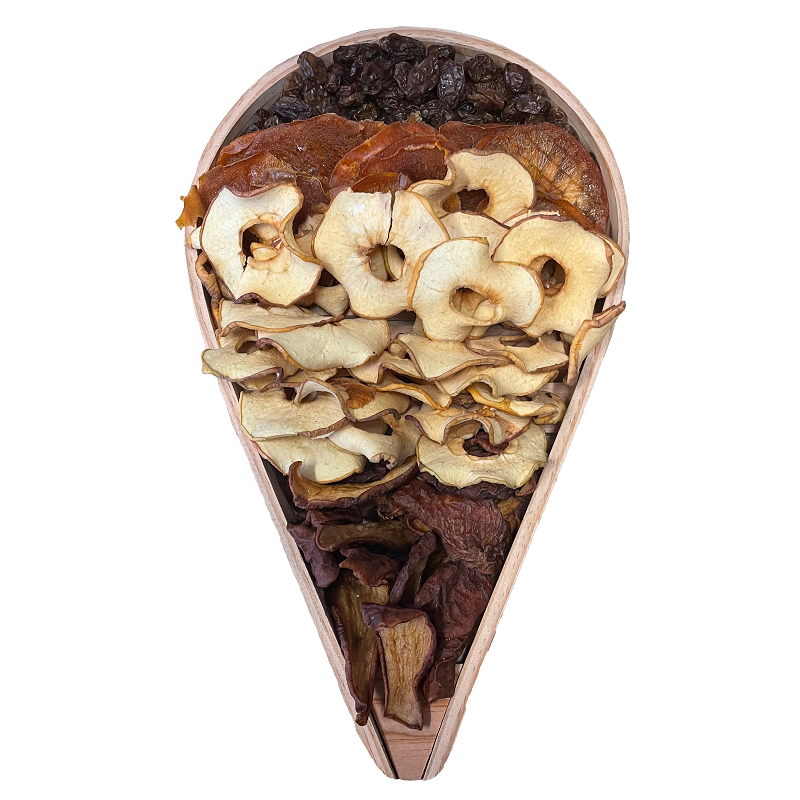 Les fruits sont déposés dans une claie, pour rappeler notre métier. Car pour faire les fruits séchés Bioloklock, nous les mettons sur des claies et nous prenons les temps de les faire sécher à basse température dans des fours traditionnels.