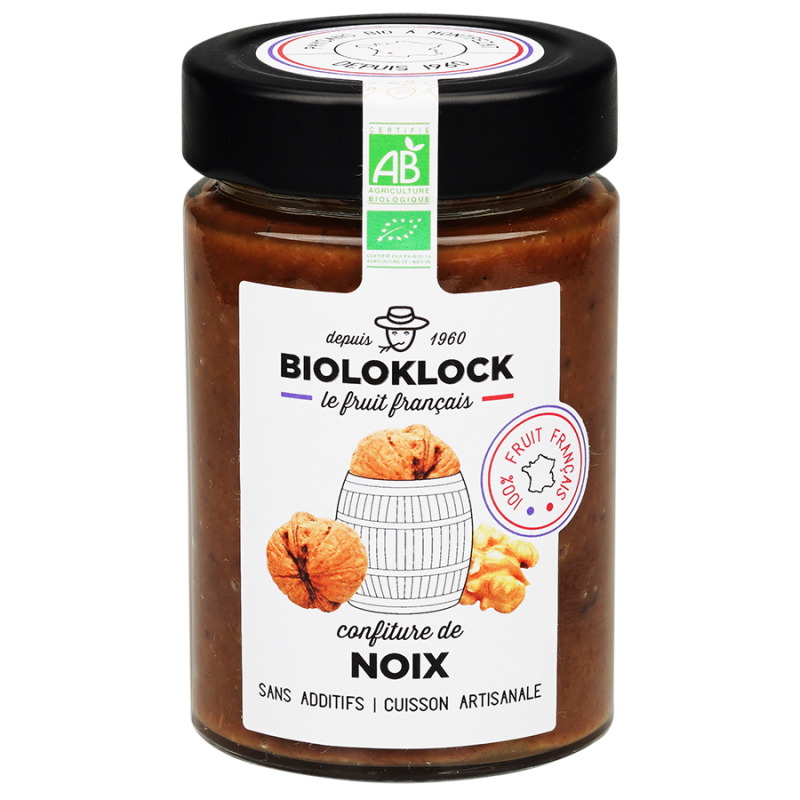 Notre confiture de noix est préparée, quant à elle, avec 58.8g de fruits pour 100g de produit fini. Teneur totale en sucre env. 56g pour 100g.