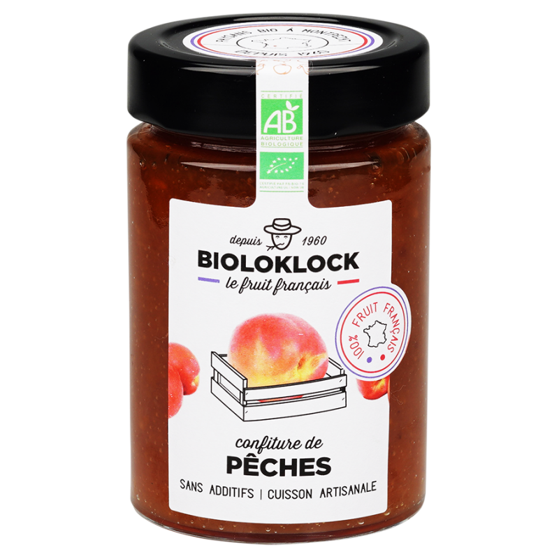 Notre confiture de pêches est préparée, quant à elle, avec 64,1g de fruits pour 100g de produit fini. Teneur totale en sucre env. 56g pour 100g.