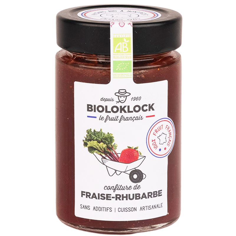 Ingrédients : Fraises 28,4%*, rhubarbes 28,4%*, sucre de canne 43,2%*.